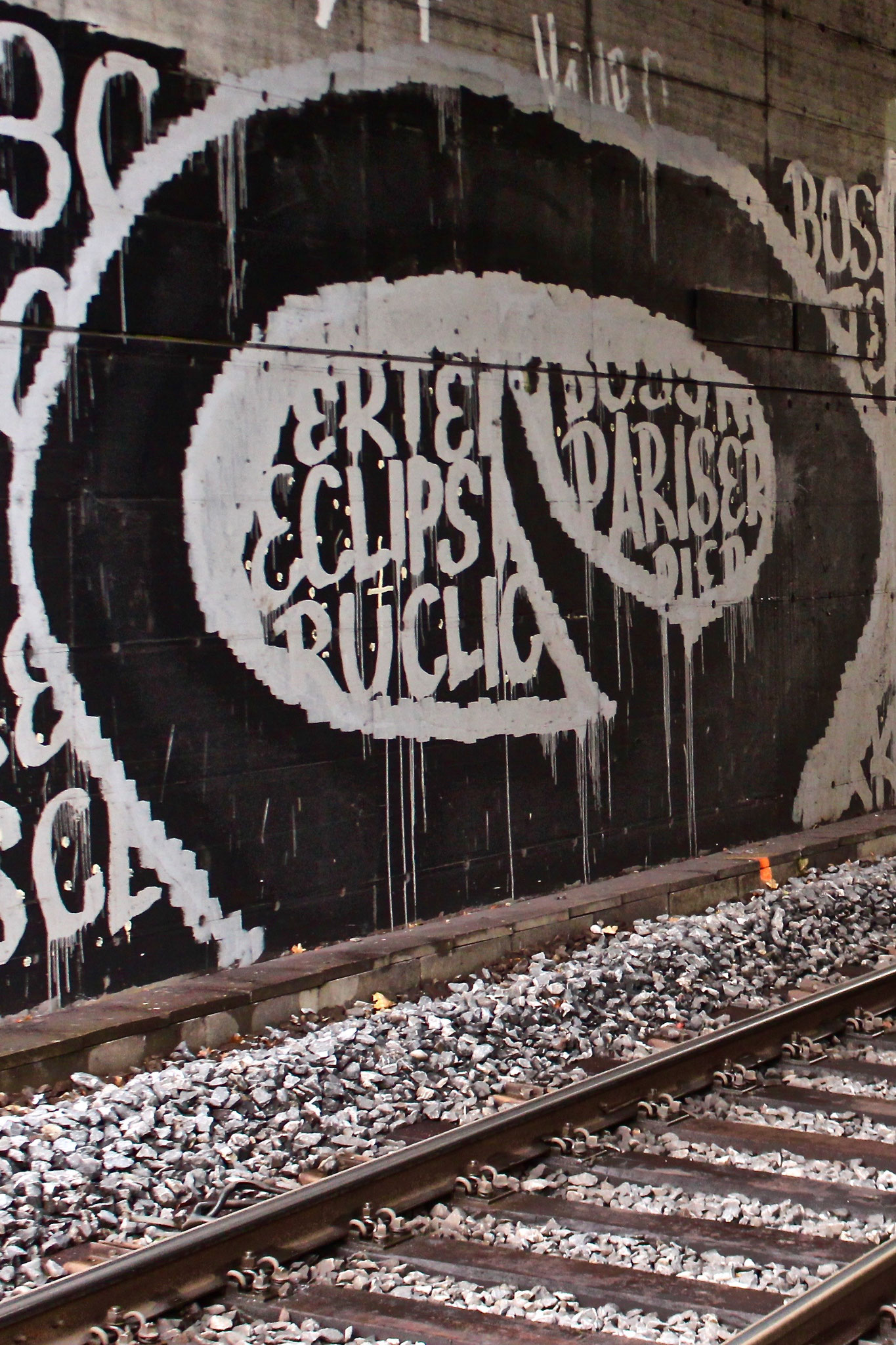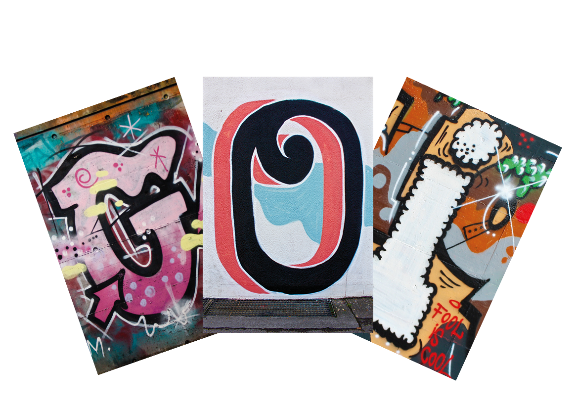 Initialen, Namen oder einen kurzen Text schreiben mit den vielgestaltigen Graffiti-Buchstaben, die wir alle in der Stadt Bern fotografiert haben.